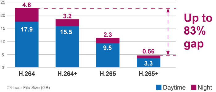 The ICA-4880 employs the H.264(+)/H.265(+) technology to enable the camera to provide higher and more efficient image compression rates. If the same image quality level of H.264 is compared with that of H.265, the latter is able to save around 83% of bandwidth, meaning H.264(+)/H.265(+) offers much higher quality video for less bandwidth. Thus, it can further enhance the overall performance of its IP surveillance system.
