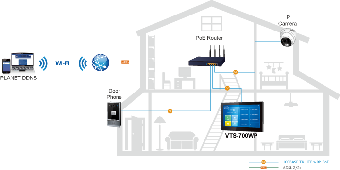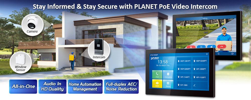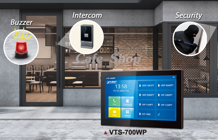 The VTS-700WP is the all-in-one smart SIP Indoor Touch Screen PoE Video Intercom. The SIP Door Phone, placed on the wall of the doorway, can be easily and directly connected to the Indoor Touch Screen unit. The communicator with high resolution touch screen, wide viewing angle and SIP protocol is easily integrated with your current telecommunications solutions. When there is an incoming call, you can have a preview of the call from PLANET IP intercom to better identify the caller.